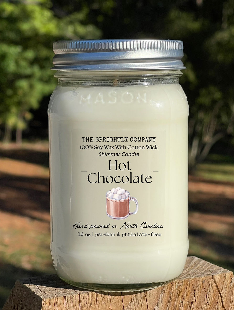 A unique feature in our candles is that we added Mica powder, an all-natural fine glitter made from a layer of the Earth’s crust. When the candle wax has melted, the Mica is suspended to create a pool of shimmering wax that is reflected by candlelight.
